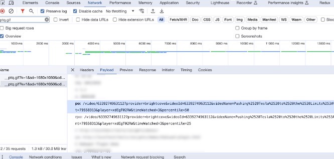 Check for network requests at the following video percentiles: 25%, 50%, 75%, 95%.