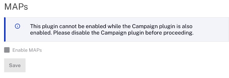 MAPs cannot be enabled simultaneously with the Campaign plugin.