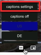 Clicking on the captions settings menu will display an overlay which allows the following caption properties to be set: