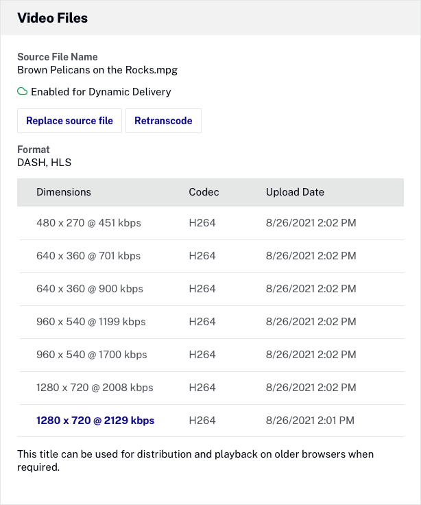 - Right-click on a link in the Dimensions column for the rendition to download. Note that a clickable download link will only display if MP4 renditions have been created.