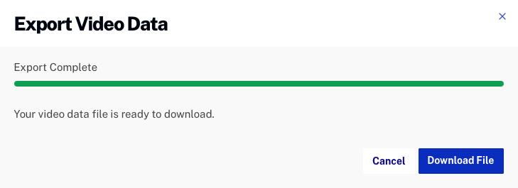 - When the export file is ready, click Download File to download the video data file to your local computer.