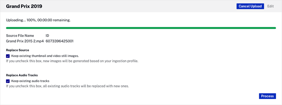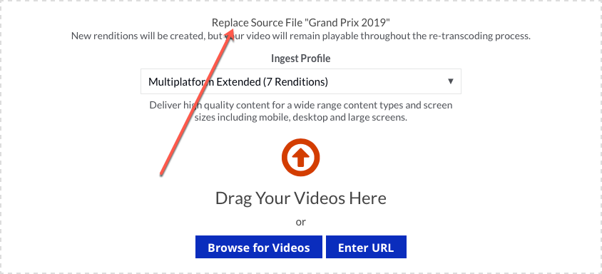 There may be times when you want to replace the source file for a video. One common case is when you need to edit a video that was already published. If you delete the video and re-upload, you will have to re-enter all of the video metadata and you will lose any video analytics associated with the video.