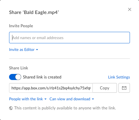 To get the URL for a video stored out on Box, follow these steps: