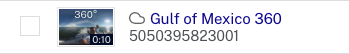 Video thumbnails also indicate videos that are marked as 360 degree videos by adding a 360 badge. For more information on working with 360 degree videos, see Working with 360° Videos.