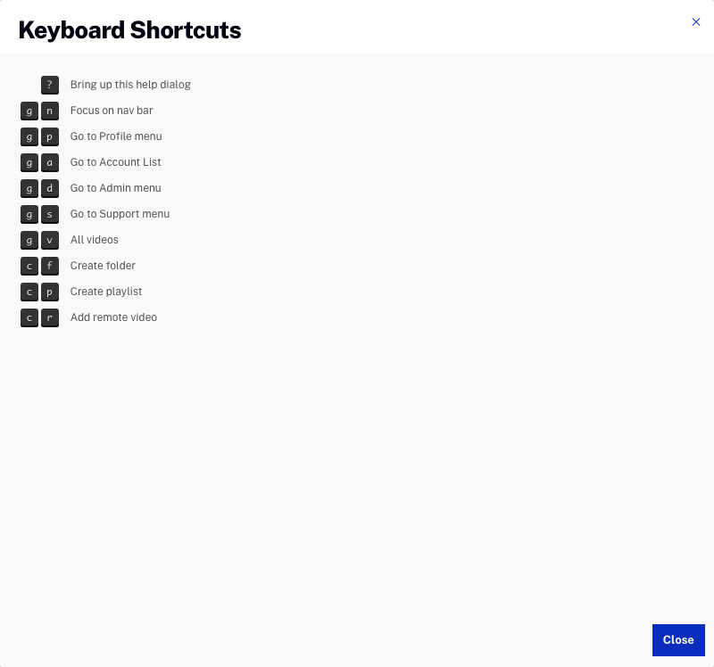 Pressing the ? key in the Media module will open a list of the shortcut keys that are available.