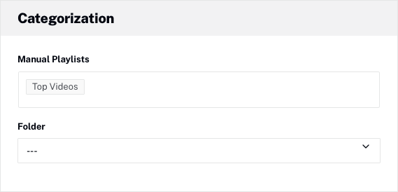 To see which manual playlists the videos is in, click the video title to open the video properties. The Categorization properties will display the manual playlists that the video has been added to.