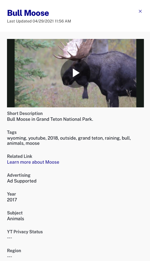 - When the images (poster/thumbnail) and/or text tracks are updated, the updated date for the video will be updated but the user who initiated the action will not be recorded