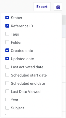 The columns that appear in the body of the page can be customized by clicking on the columns button () and then selecting the columns that should be displayed.