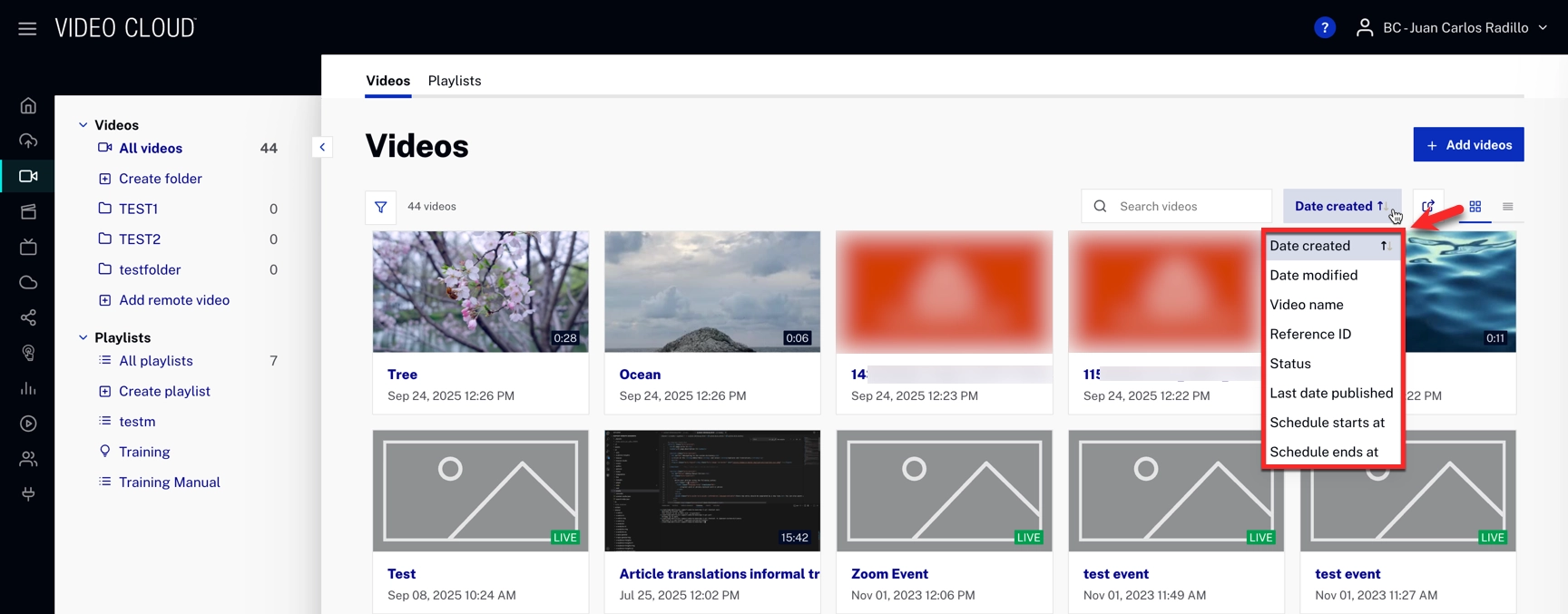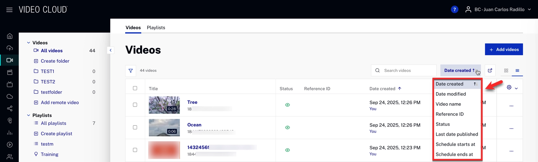 Ingestion: Filter videos by their Ingestion Profile ID.