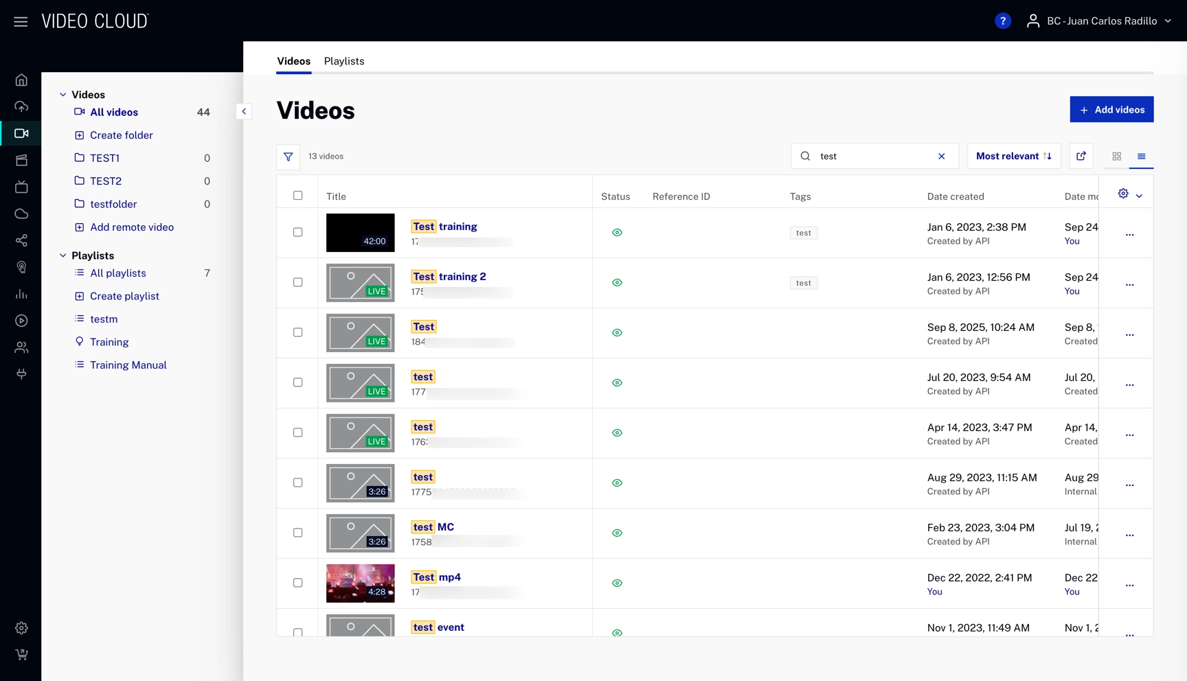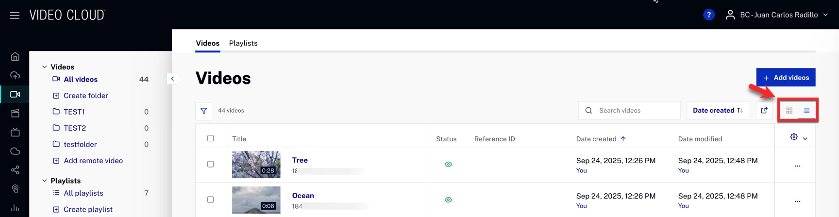 - Key Information on Hover: Hovering over a video thumbnail reveals key information, such as ID and Tags.