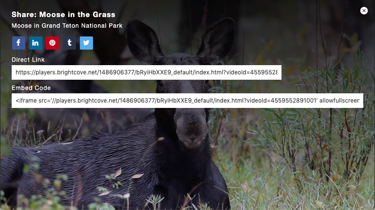 Players can be configured so the video content can be shared to popular social media sites. When social sharing is enabled, a share icon will appear in the title and description dock.