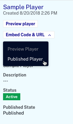 The Published Player embed code can also be copied by clicking on a player name and then clicking