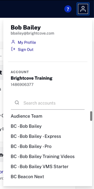 - If you have multiple accounts, click the profile icon in the top right of the page and select the account you would like to create the player in.