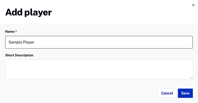 - Enter a Name and Short Description for the player. For this Quick Start, the player name will be Sample Player.