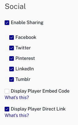 When social sharing is enabled, a share icon will appear at the bottom of the player next to the playhead. This will allow viewers to share your content out to popular social media sites. For more information on configuring the social properties for a player, see Configuring the Social Properties for a Player.