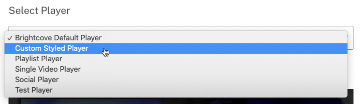 - Select a player to use. When publishing playlists, there are some playlist-related player properties that can be set to control appearance and behavior of the playlist. See the Setting playlist properties section below for details.