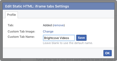- Click Save. Note that the Facebook Settings UI will still display a tab name of Welcome but the new name will appear when you view the page.