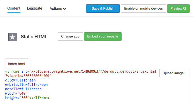 - Click the HTML as appropriate. Click Save & Publish when done.