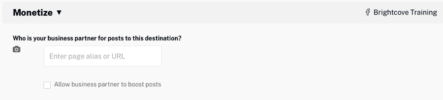 - Who is your business partner for posts to this destination? - Add a business partner for branded content posts. As you type, a list of matching businesses will appear. For information on Facebook branded content, see the Facebook documentation.