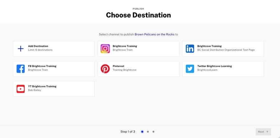 Once you have created publishing destinations, follow these steps to publish videos to social media.