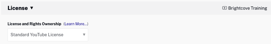 Click on the License link and select a License and Rights Ownership setting for the video. The following settings are available: