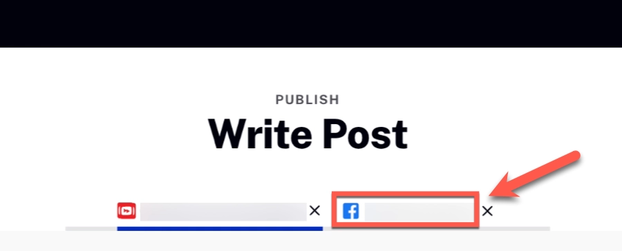 - Edit the post for each destination. You can navigate through your different posts by clicking on the tabs shown below.
