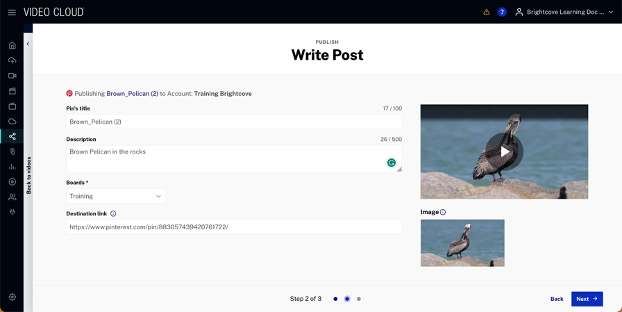 - Boards- Choose which board you want to publish your video. You must have at least one board created.