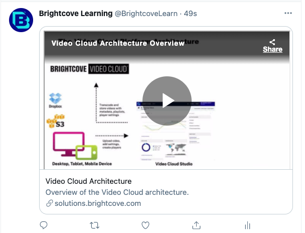 By default, when a viewer uses the social sharing feature in the Brightcove Player to Tweet a video, the URL to the page containing the video will appear in the viewer's X feed.