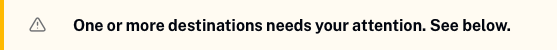 An error icon () will be displayed next to the destination name. This can happen if the Brightcove permissions are removed from the social media account or when the credentials used when creating the destination are no longer valid. To resolve the issue:
