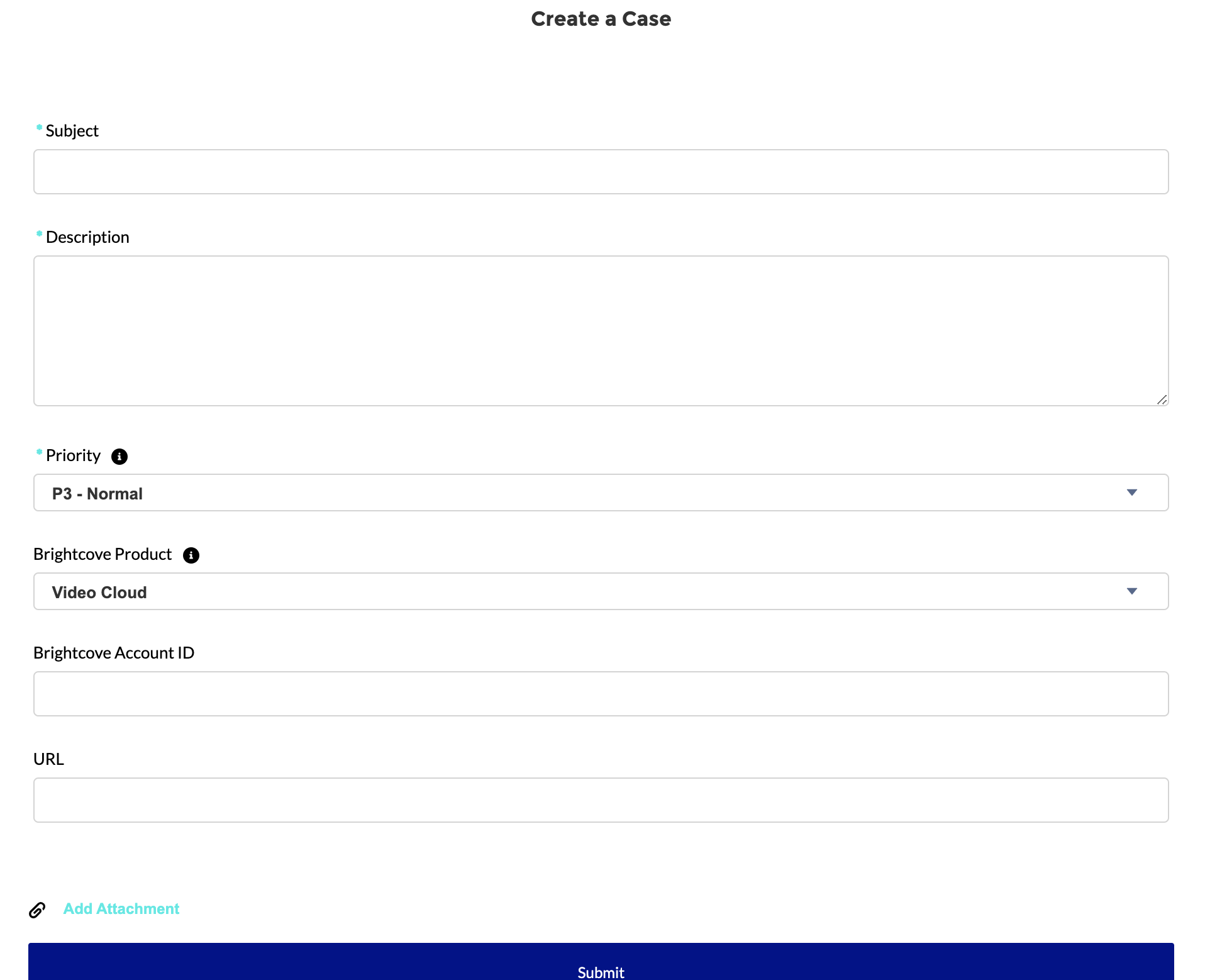 - Product - The Brightcove application to which the support request relates to
