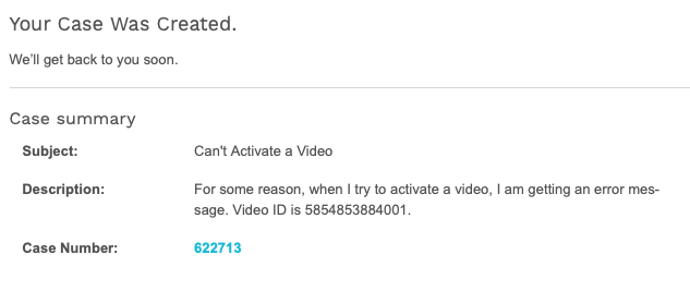 Opening a Case with Brightcove Support